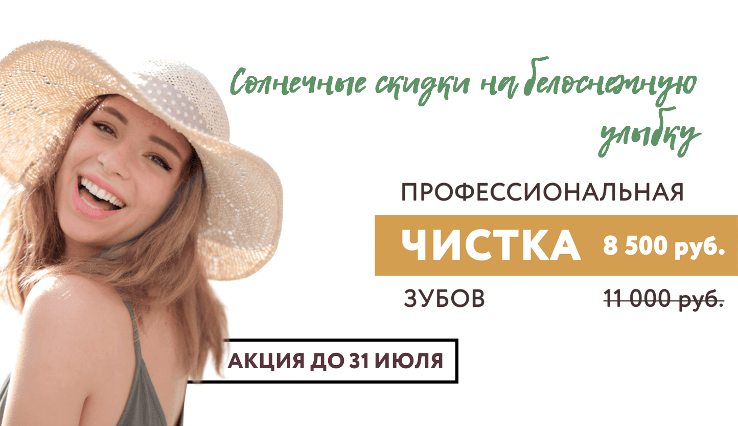 Профессиональная чистка зубов – 8 500 рублей вместо 11 000 рублей.