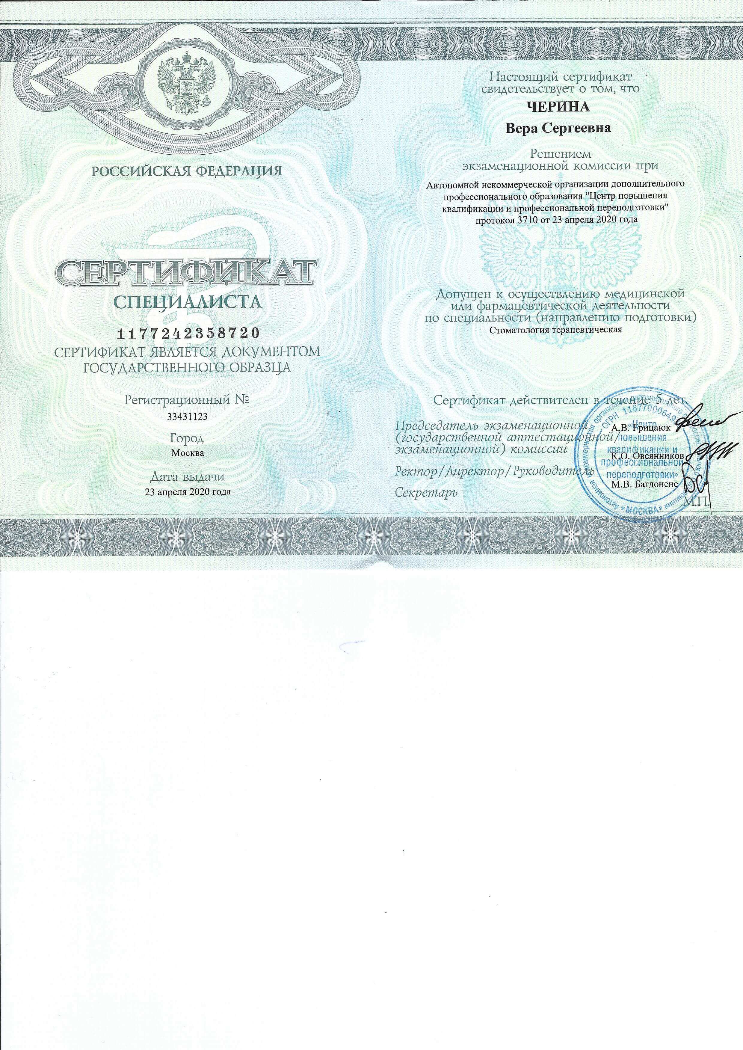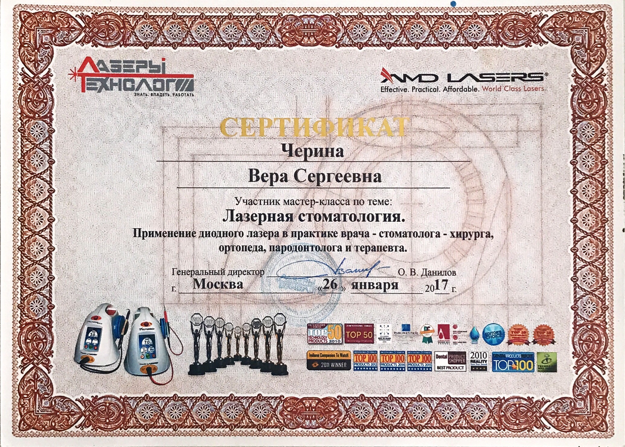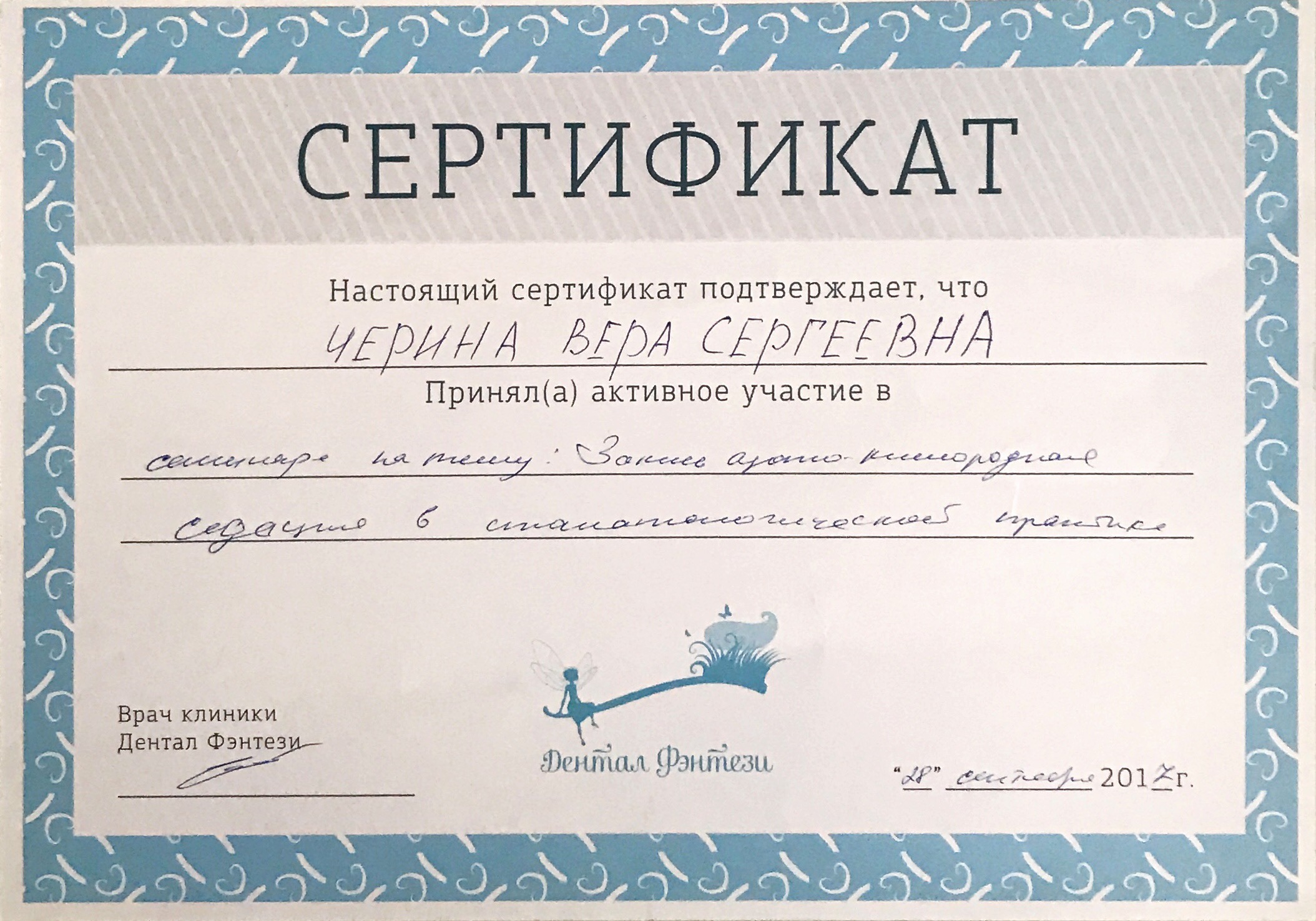 2015 г. – Курс по специальности: терапевтическая стоматология. 2019 — Курс профессора Макеевой И. М. «Mucosa Oris: Что должен знать и уметь каждый стоматолог»Профессиональные навыки: