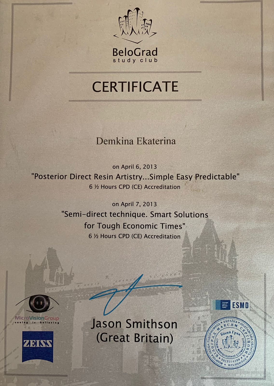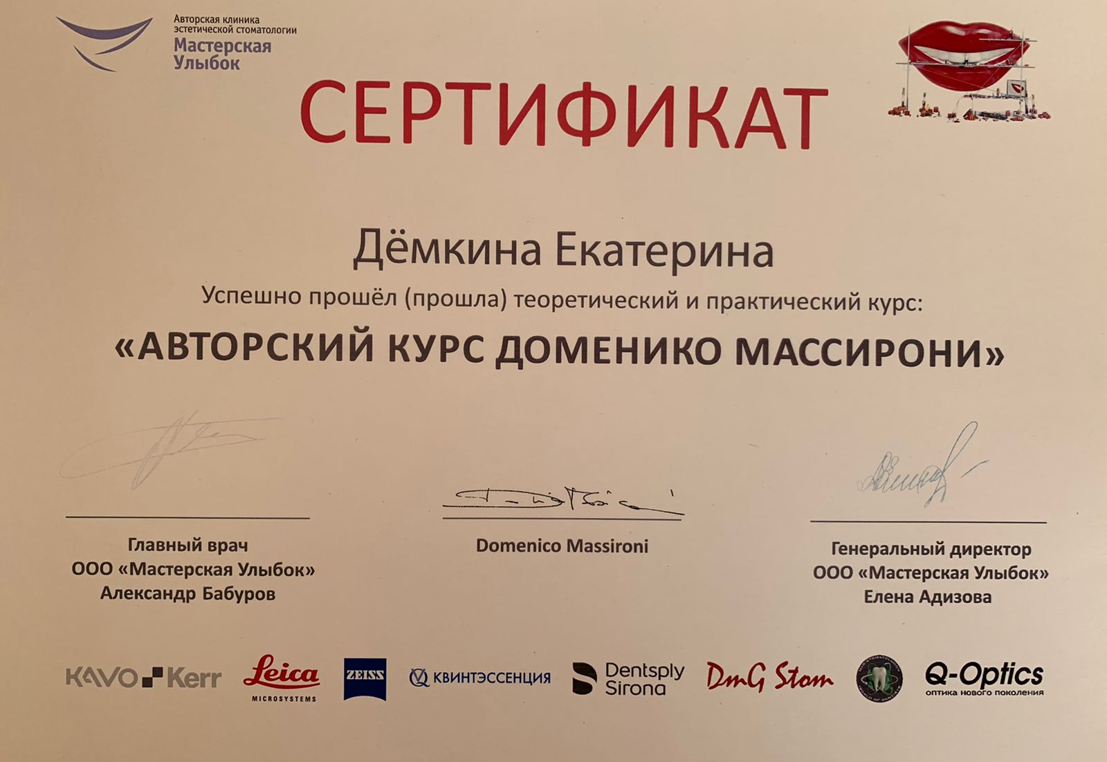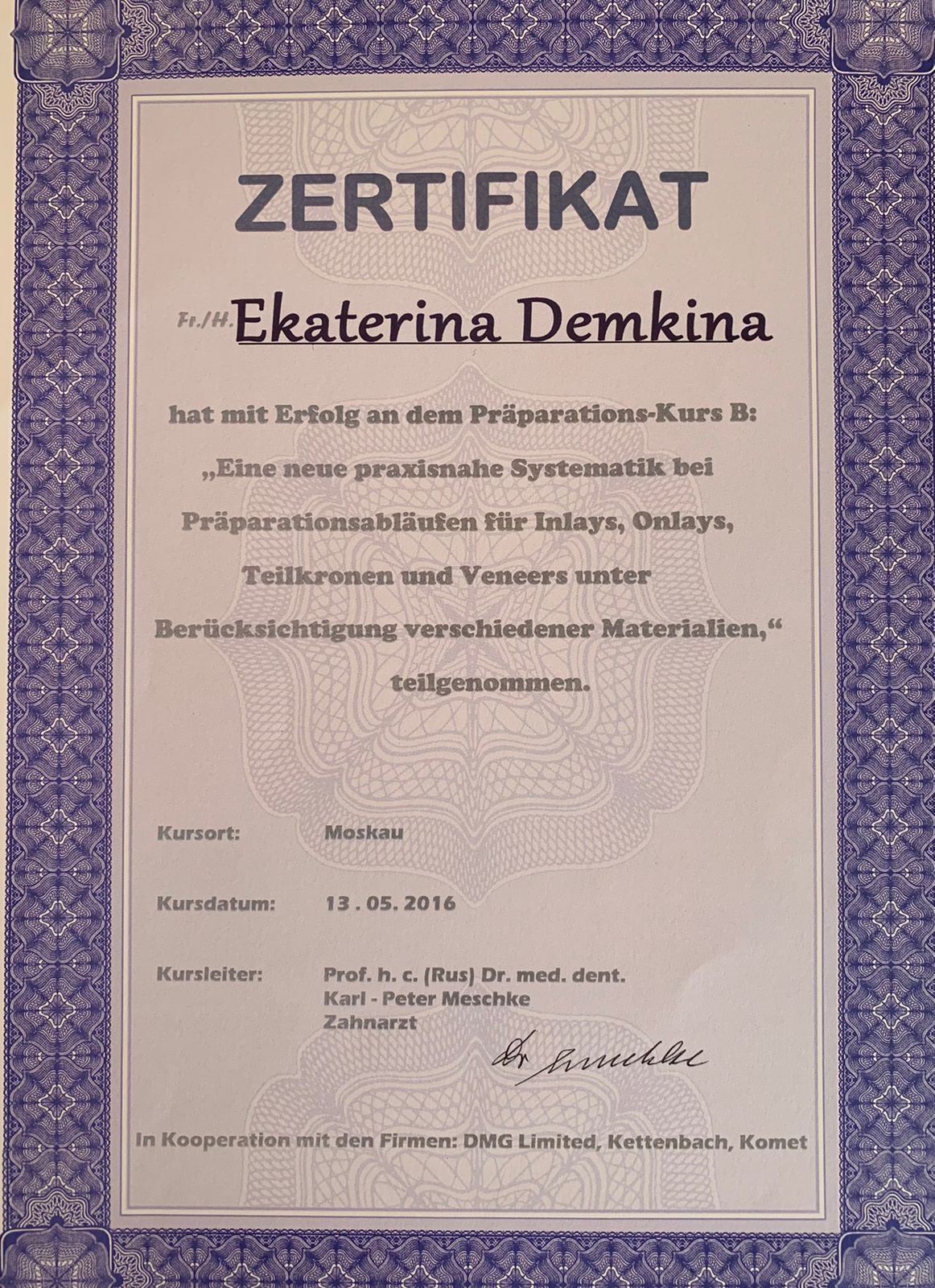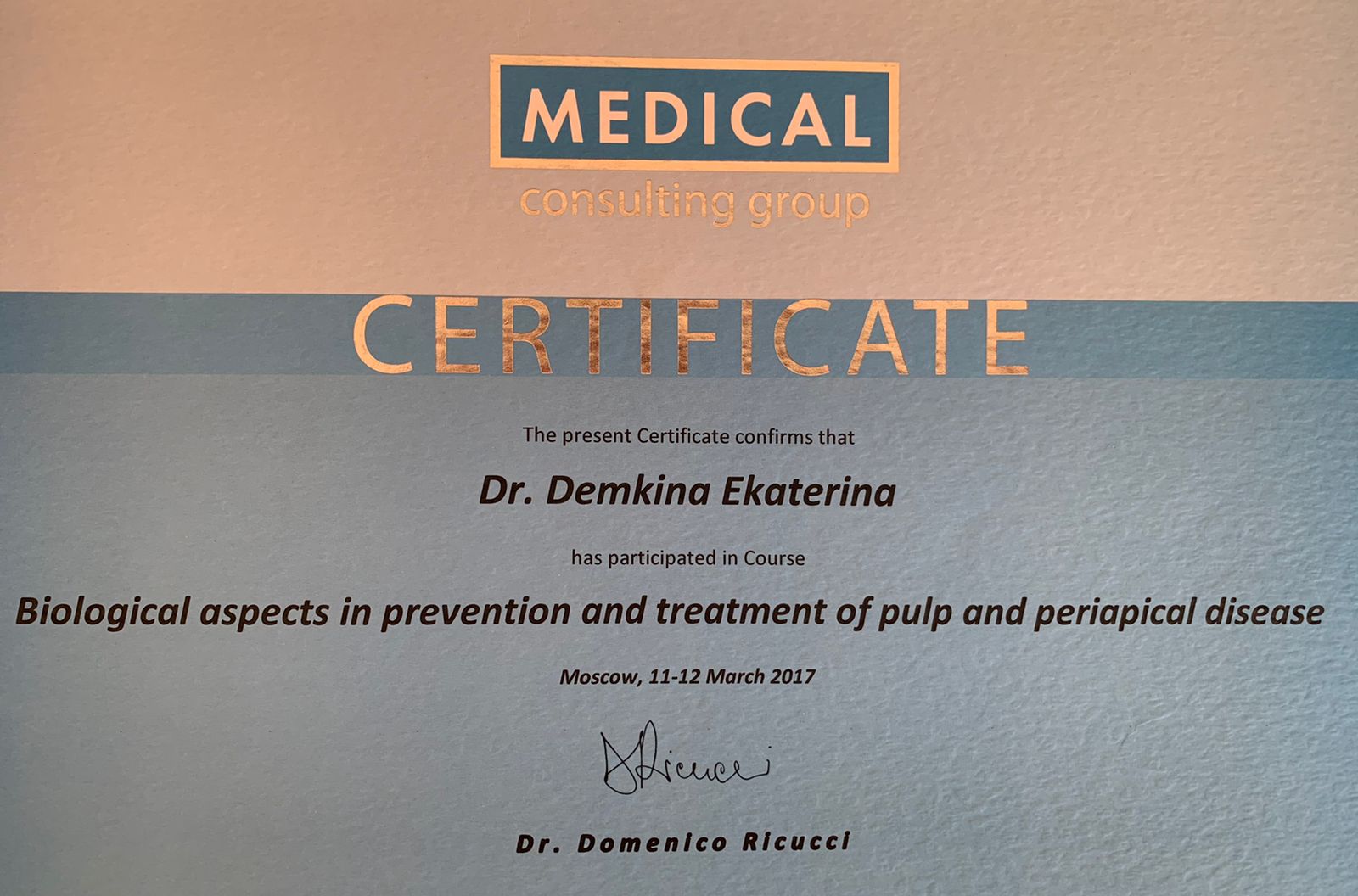 Тверская государственная медицинская академия (2006г.) Профессиональная переподготовка по специальности «Стоматология терапевтическая» Межрегиональный центр подготовки медицинских кадров (2019 г.) Профессиональная переподготовка по специальности «Стоматология» ортопедическая» МГМСУ имени А. И. Евдокимова, Стоматология ортопедическая (2015 г.)Профессиональные навыки