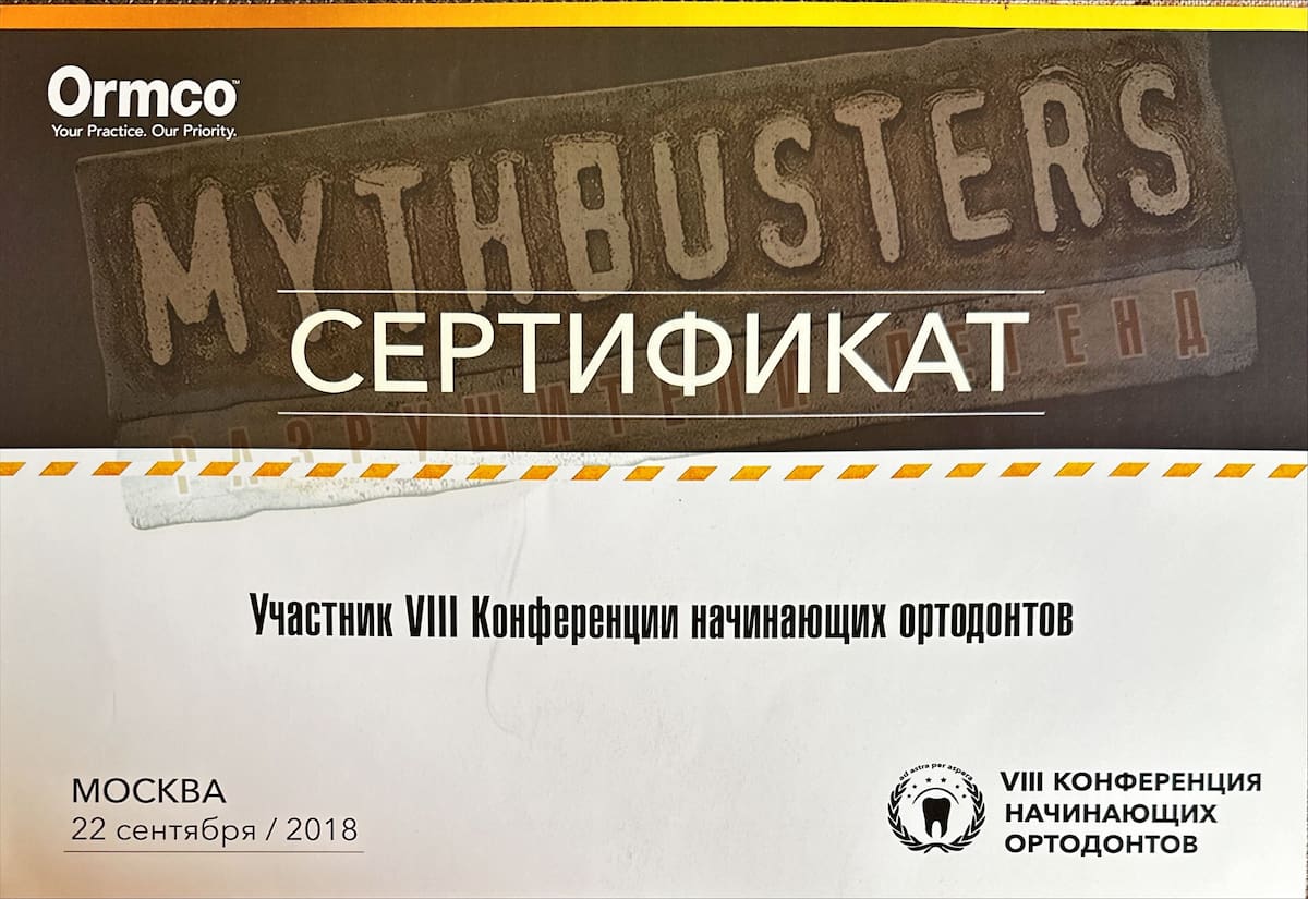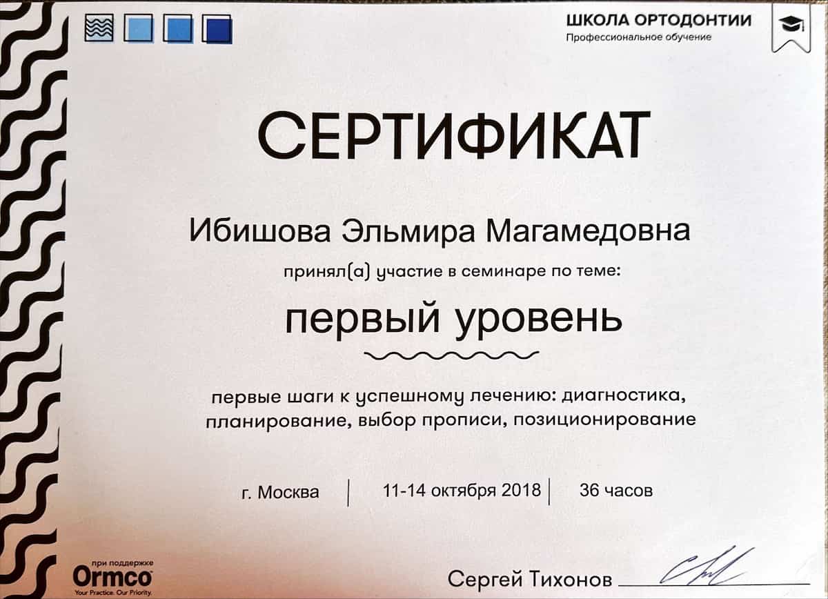 - 2018 Первый уровень школы ортодонтии Ormco( первыешаги к успешному лечению:диагностика,планирование,выбор прописи ,позиционирование)