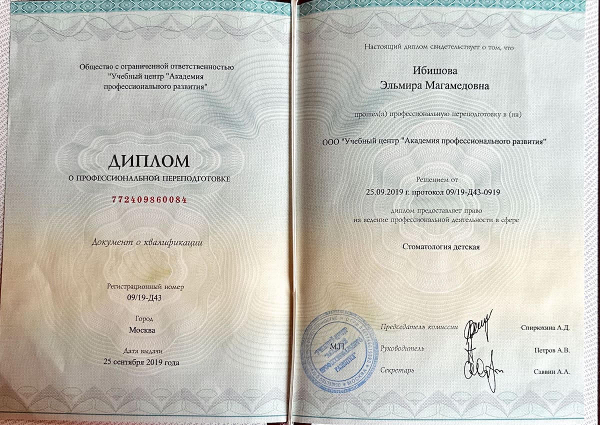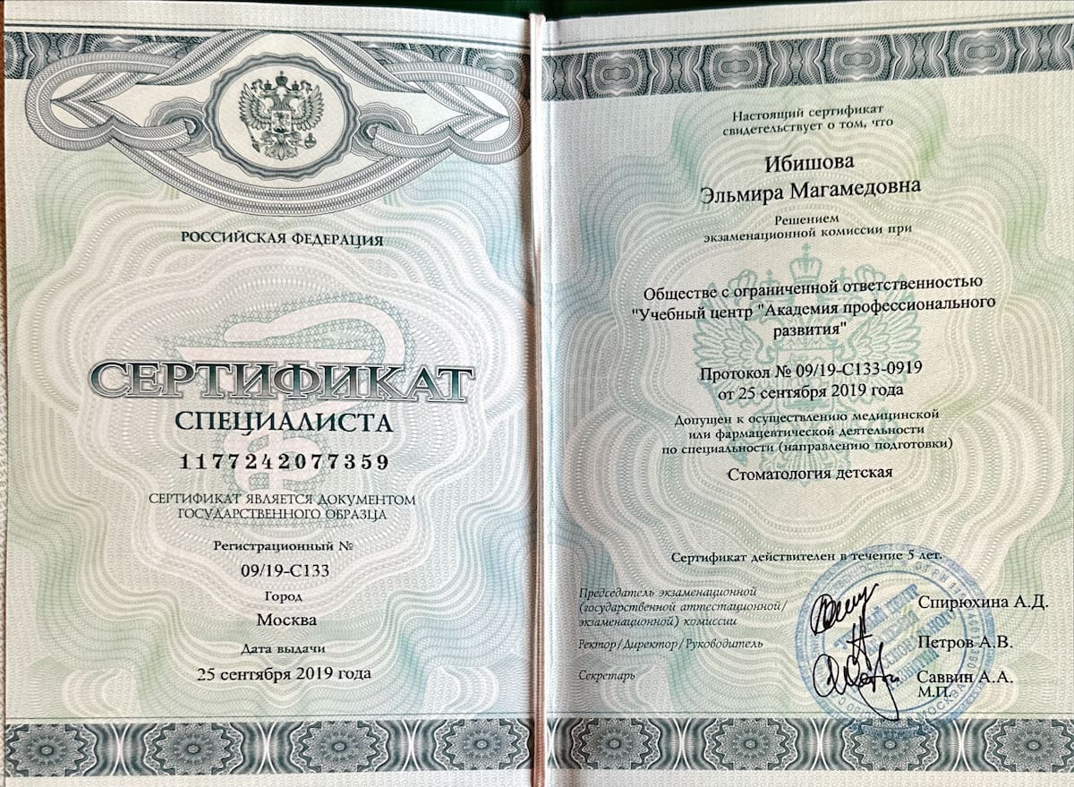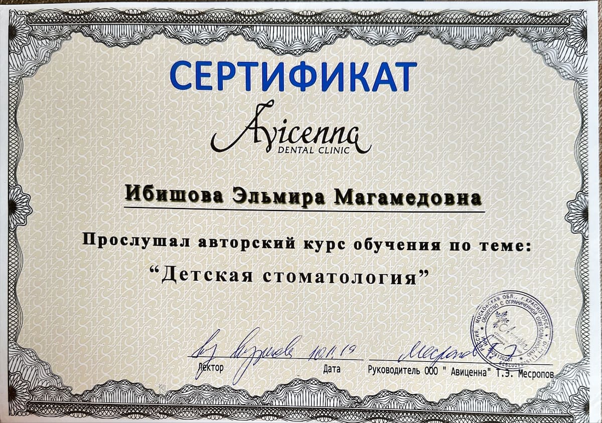 - 2019 Авторский курс обучения по теме: «Детская стоматология» Avicenna Dental Clinic.