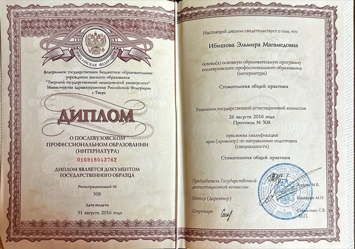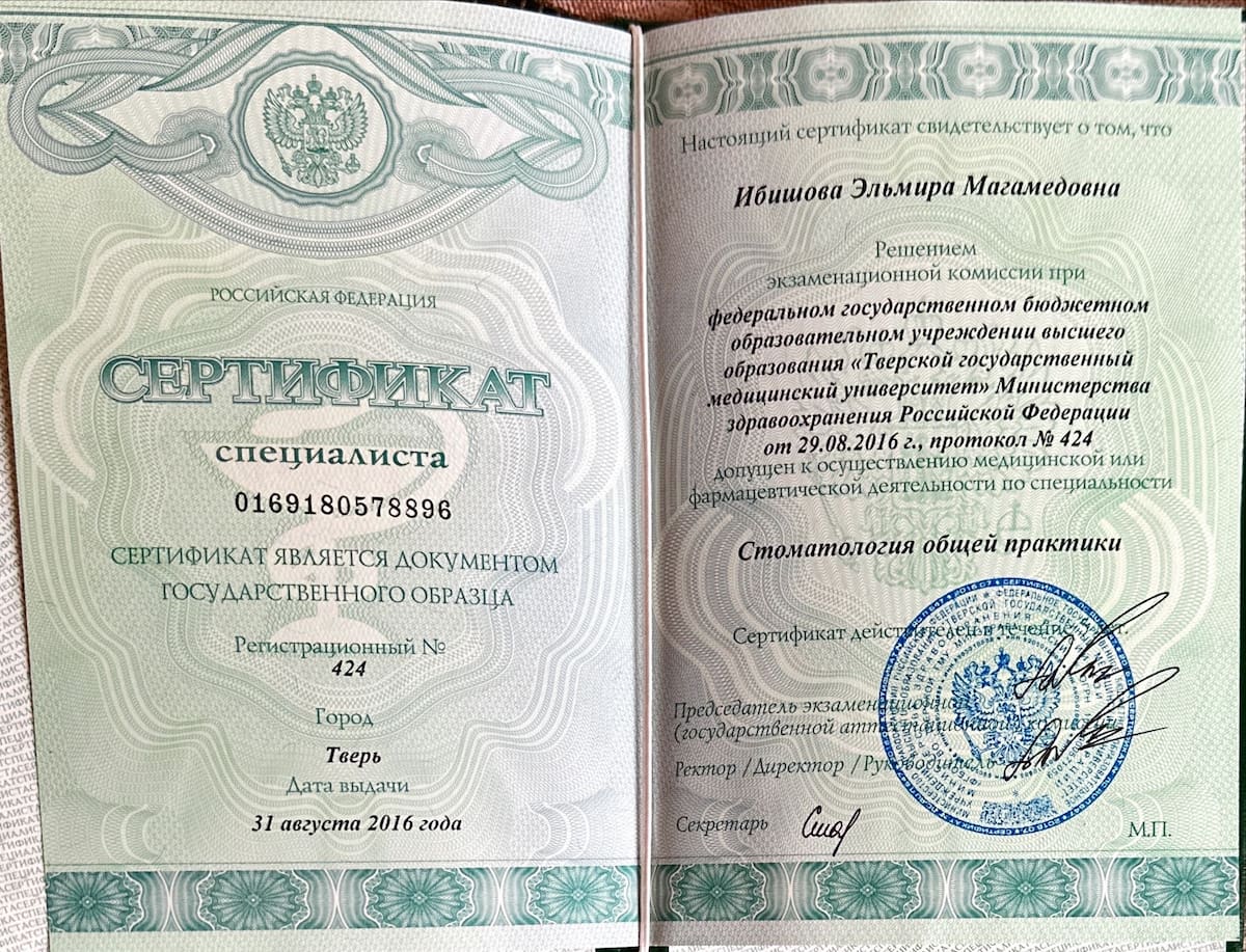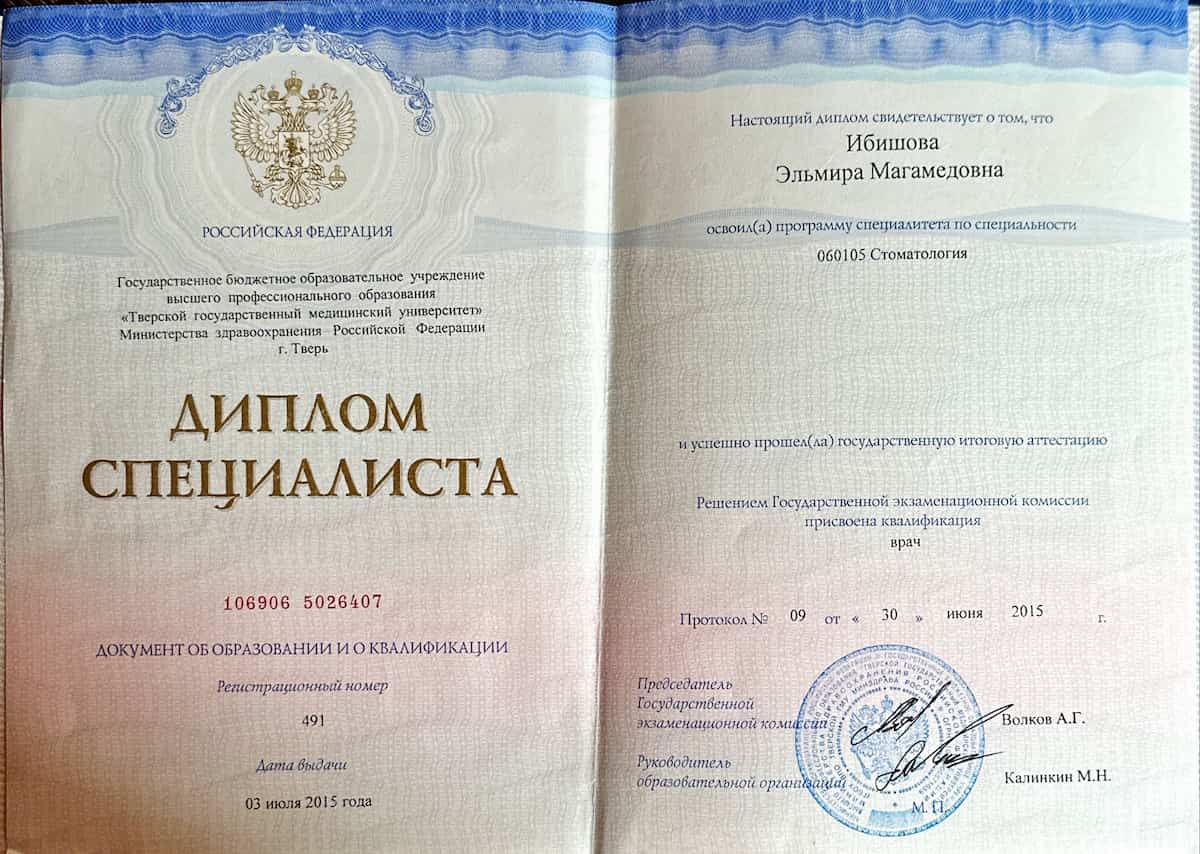 2015 – «Тверской Медицинский Университет»(стоматологический факультет).Профессиональные навыки