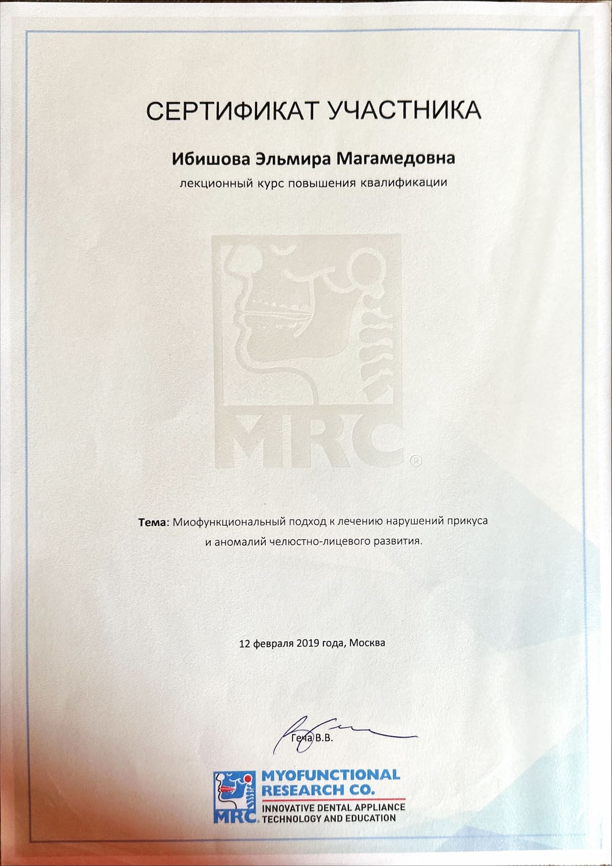 - 2019 Миофункциональный подход к лечению нарушений прикуса и аномалий челюстно-лицевого развития.