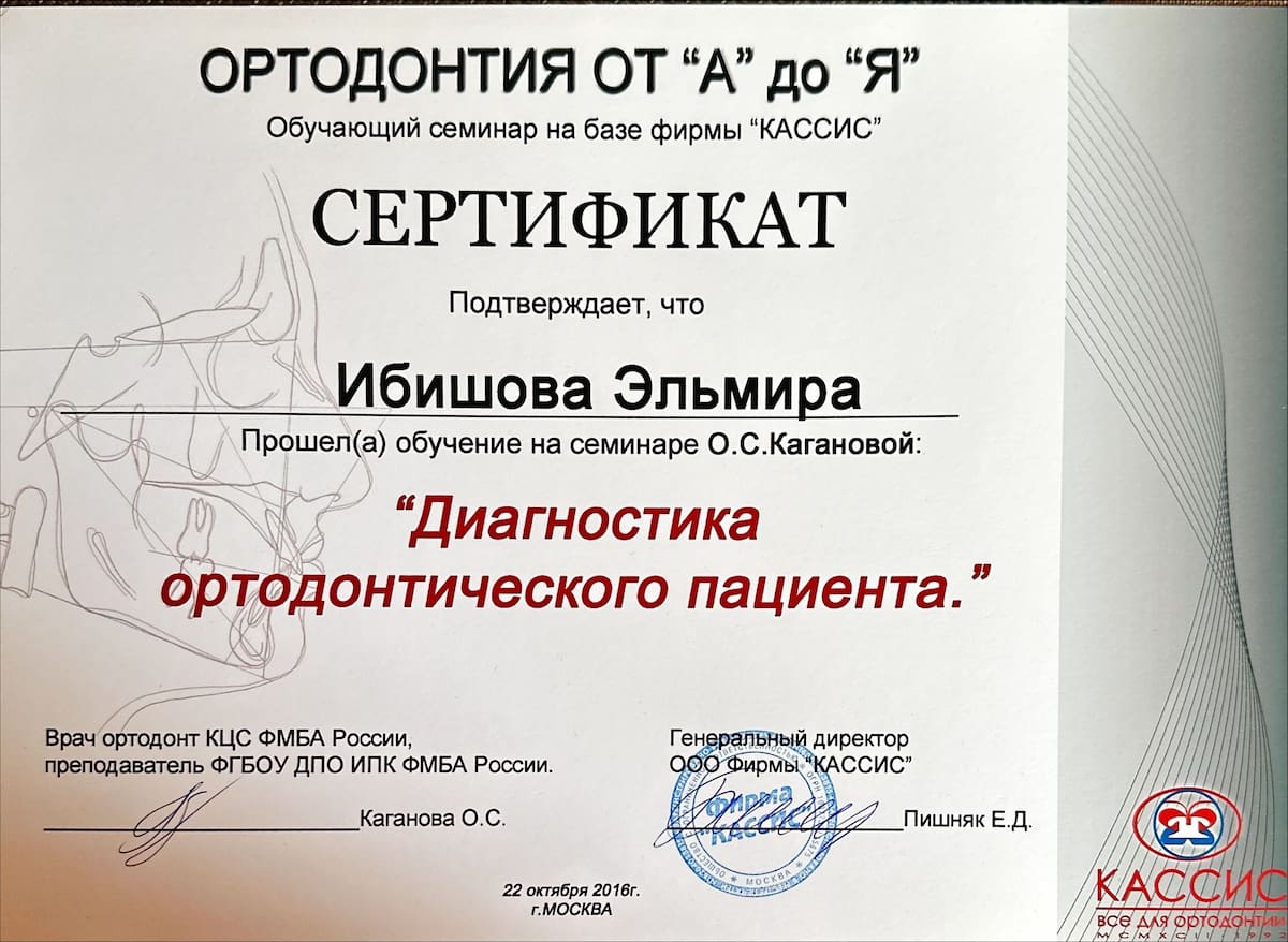- 2016 «Диагностика ортодонтического пациента».КагановаО.С