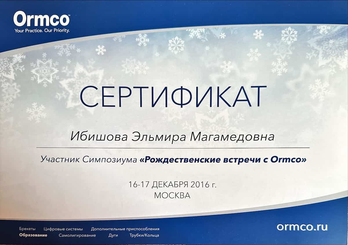 - 2016 Участник симпозиума «Рождественские встречи с Ormco»