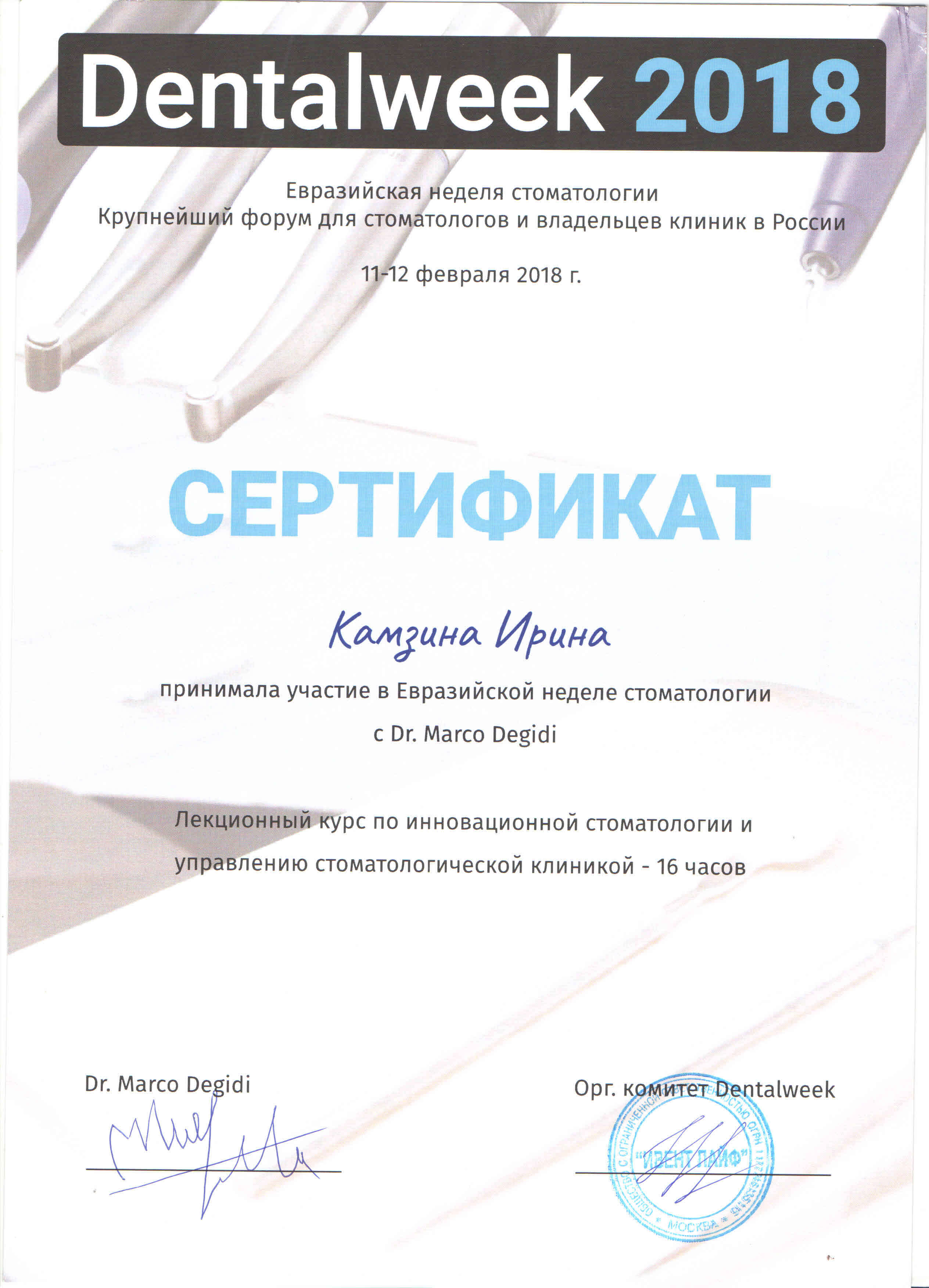 2010 г. — Последние достижения в эндодонтии и эстетической стоматологии; 2013 г. — Повышение квалификации в РУДН по специальности стоматология терапевтическая; 2013 г. — Эндо для вас — новое в эндодонтии; «Экстрим в эндодонтии или С образные каналы»; «Реставрация, ошибки и их устранение»; «Primary Endodontics».Оказывает услуги