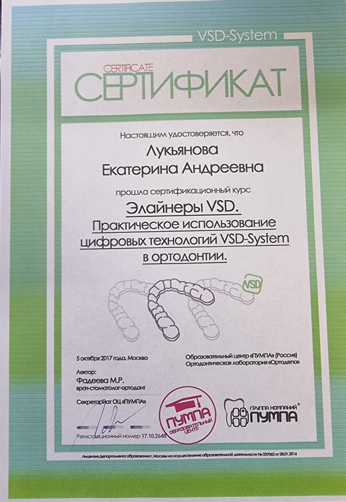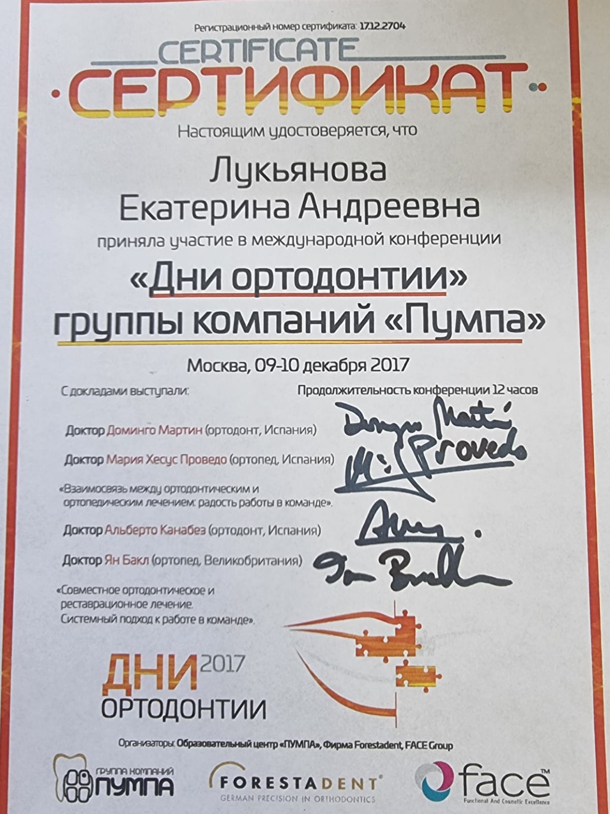 2017-Принимала участие в международной конференции «Дни ортодонтии группы компаний Пумпа»