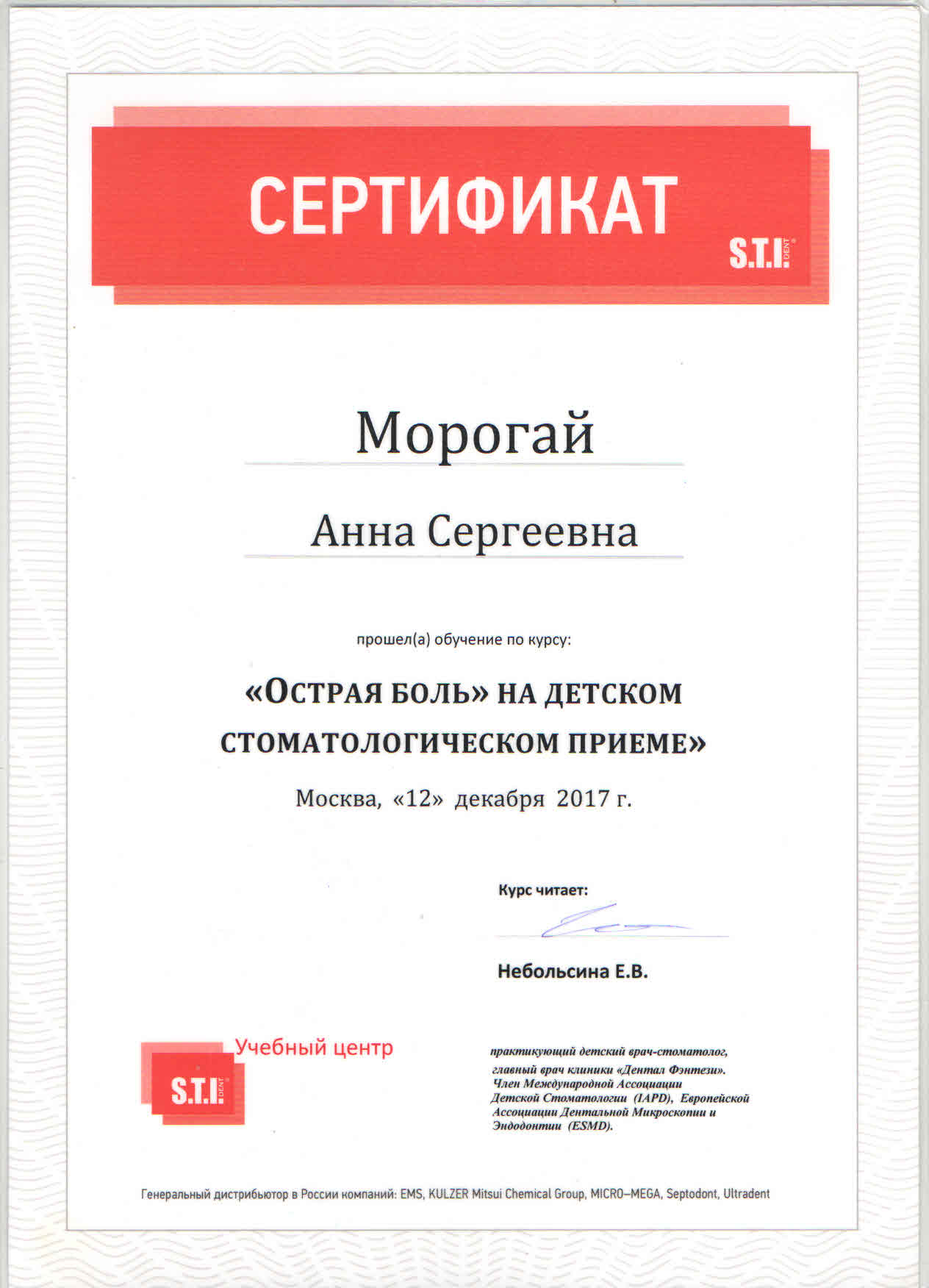 Работа с детьми раннего возраста до 3 лет; Работа с детьми, имеющими негативный опыт лечения; Адаптация детей, совместно с психологом, до приема и во время лечения.Членство в профессиональных организациях: