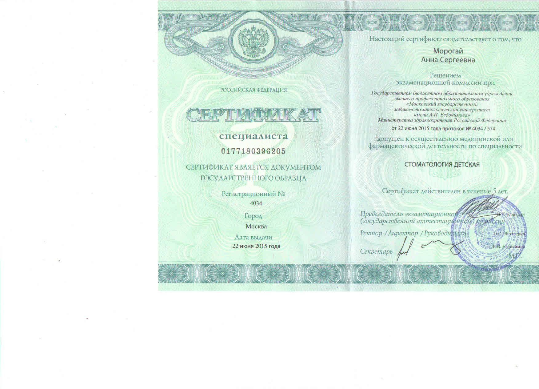 1. Стоматология детская (уникальный номер реестровой записи об аккредитации 7722 029306083) до 28.02.2027г.Специализация: