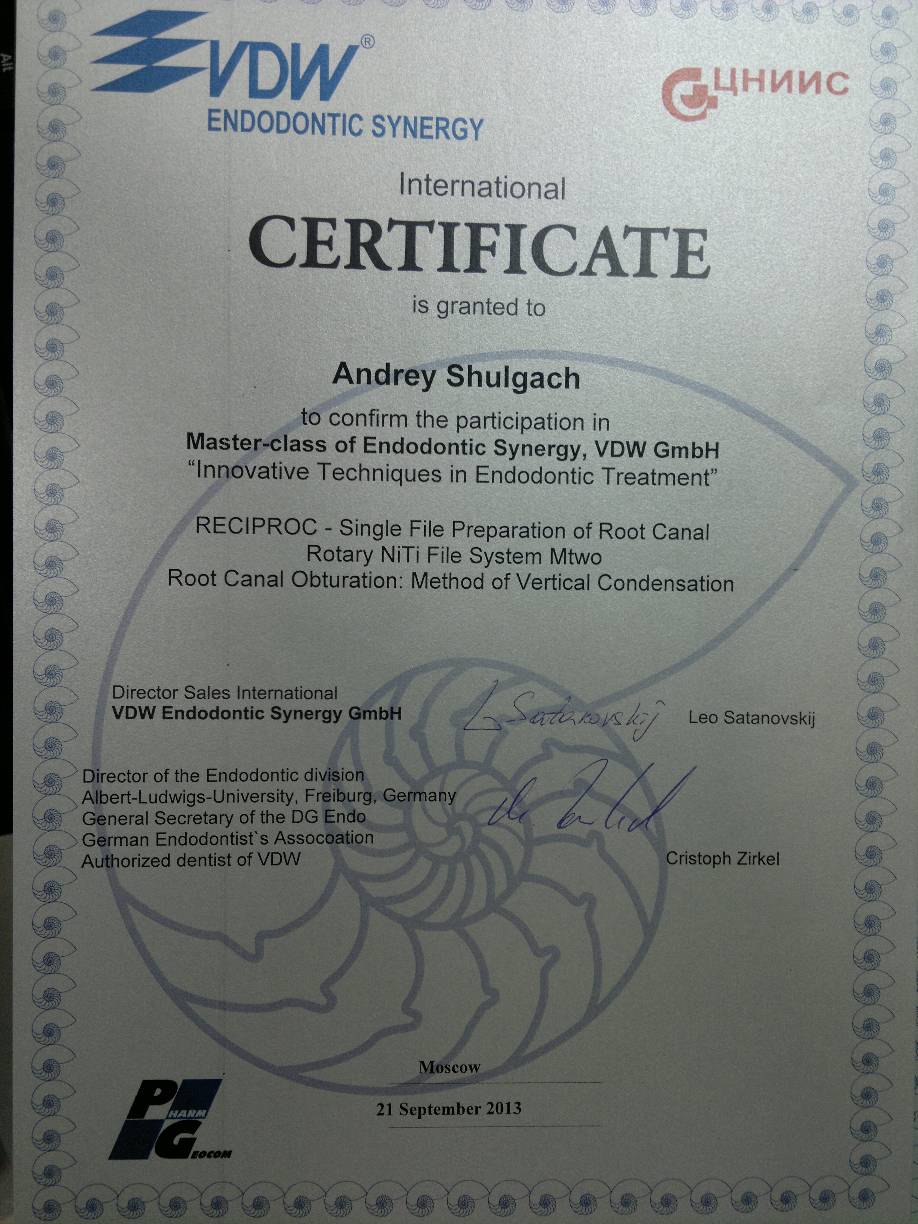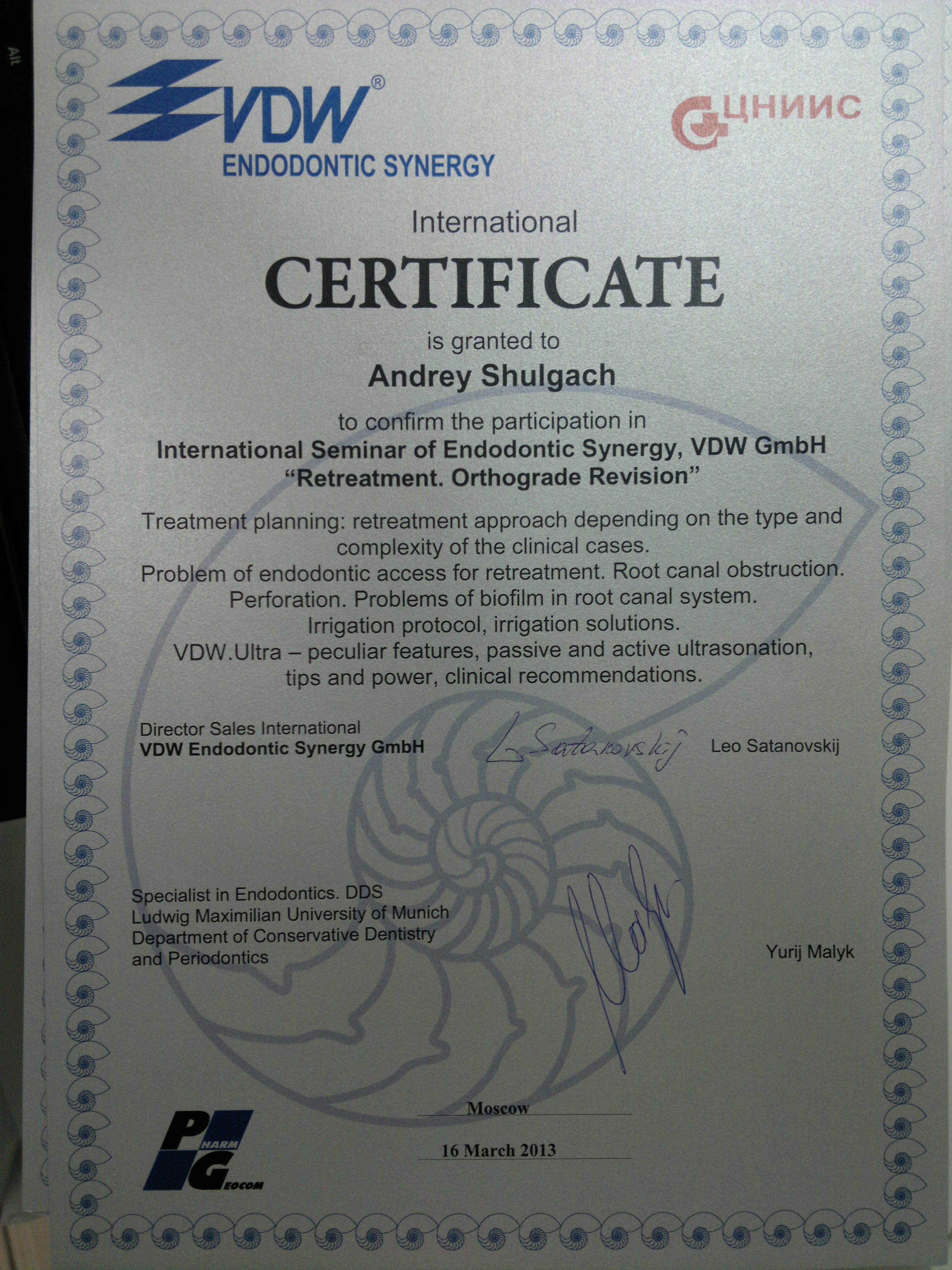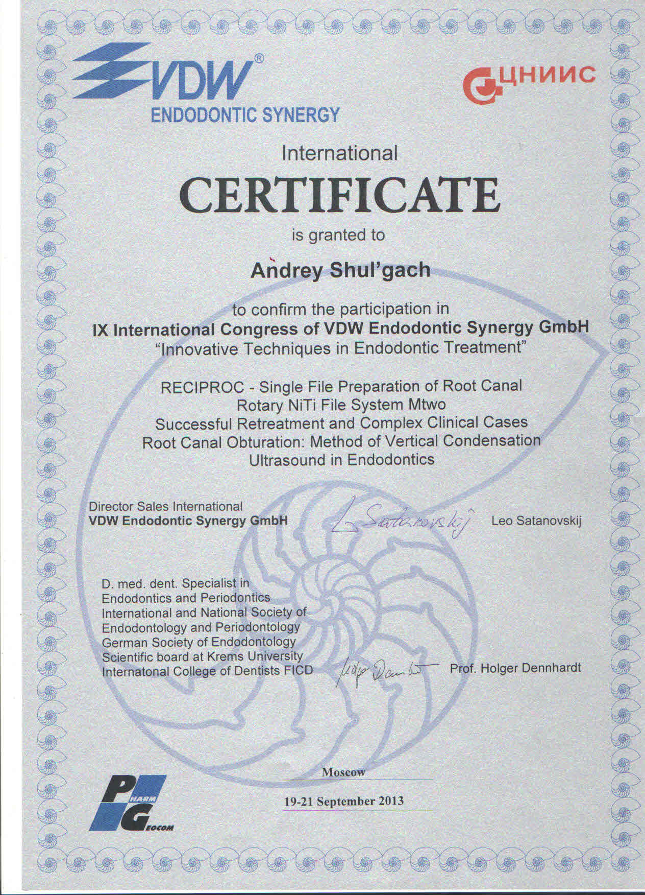 Ежегодный участник Международного эндодонтического конгресса VDW GmbH;