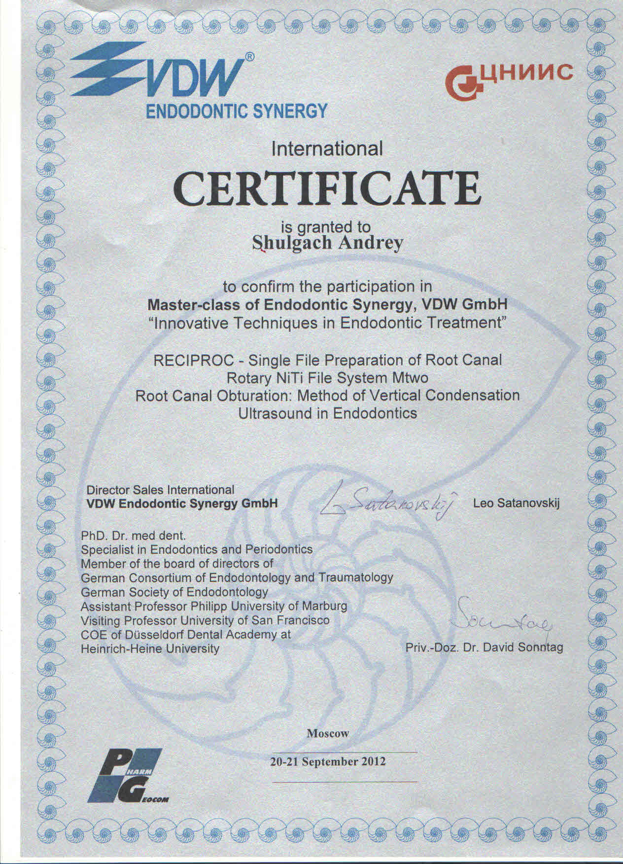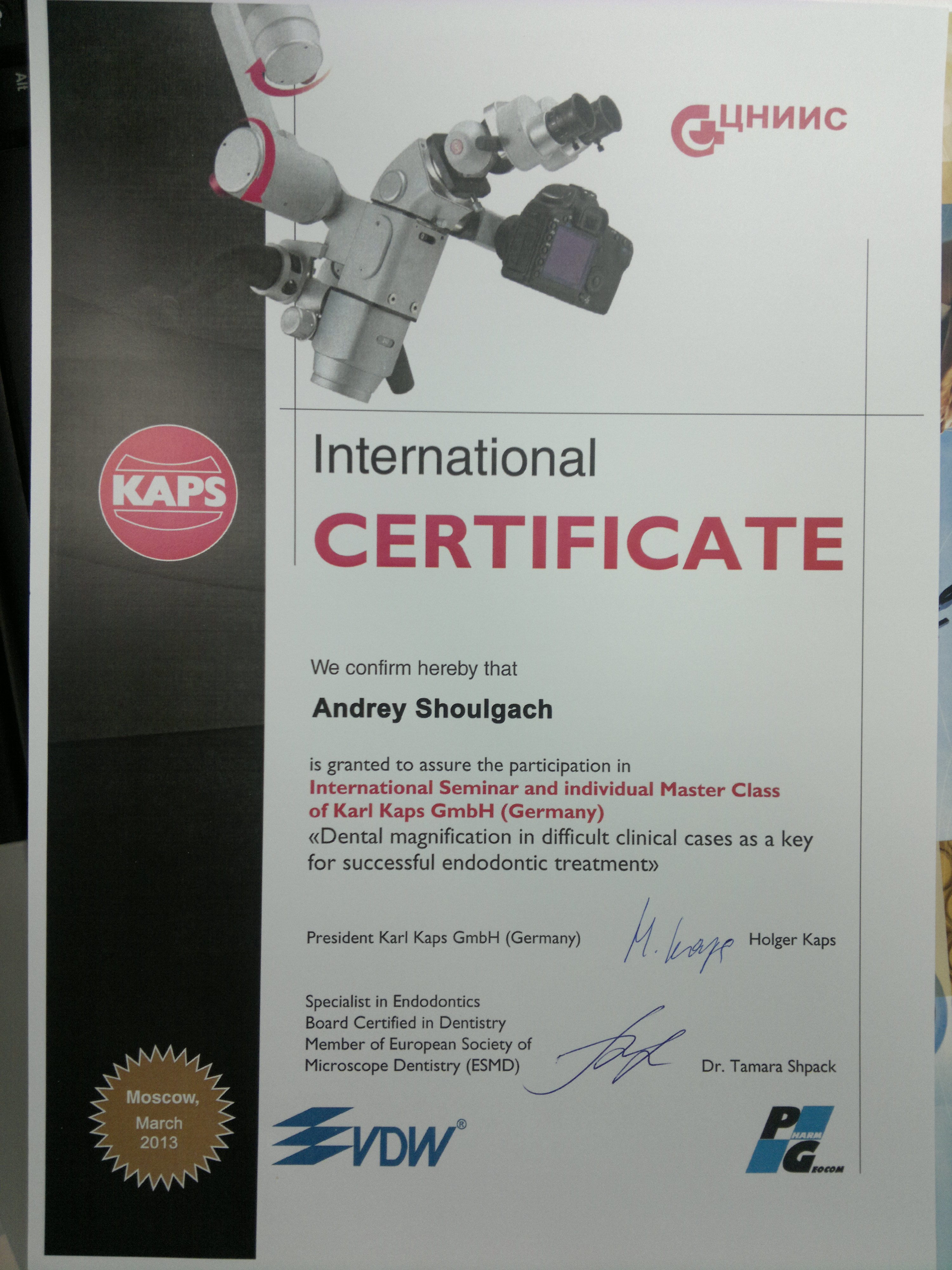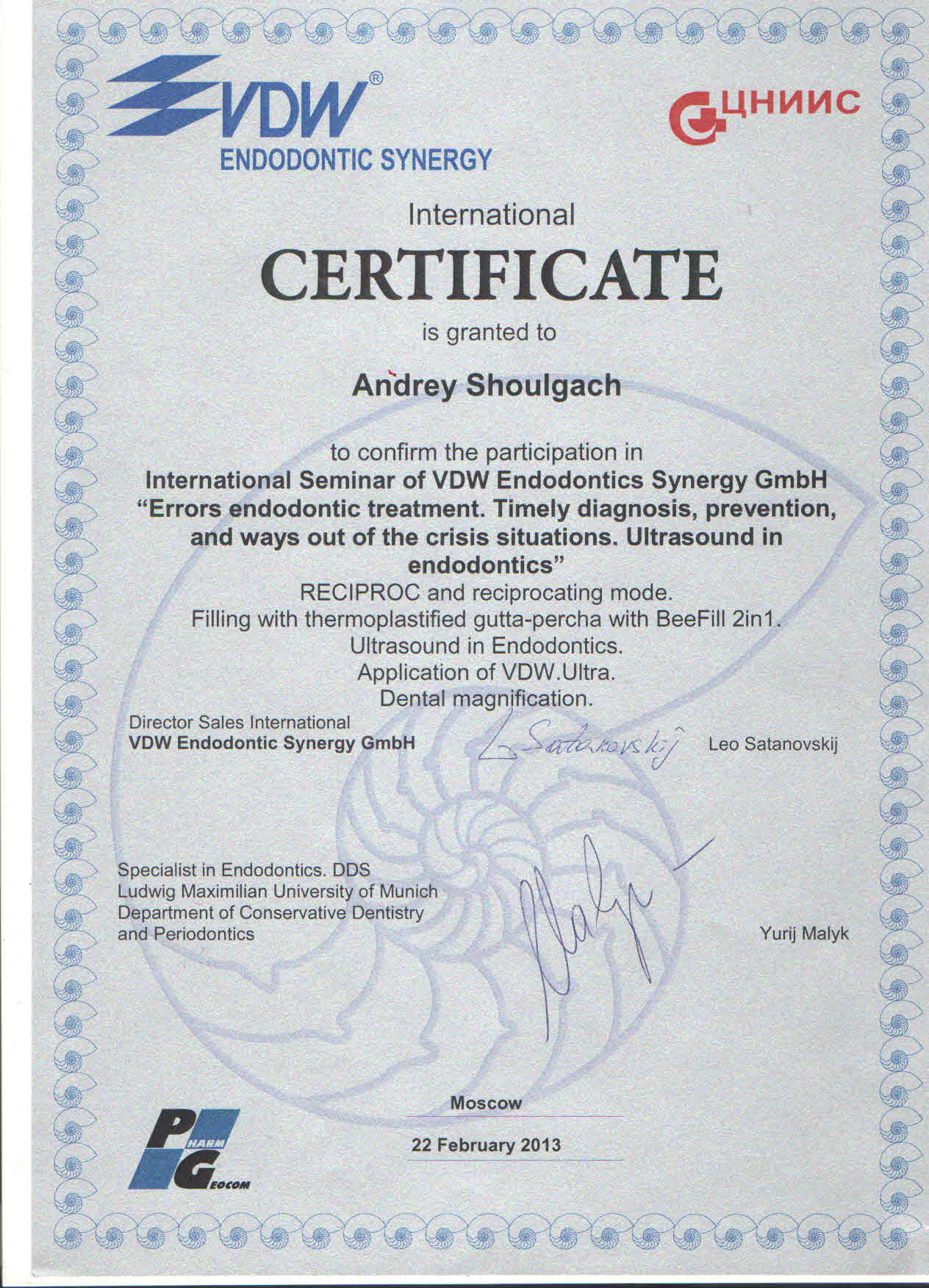 Ежегодный участник Международного эндодонтического конгресса VDW GmbH;