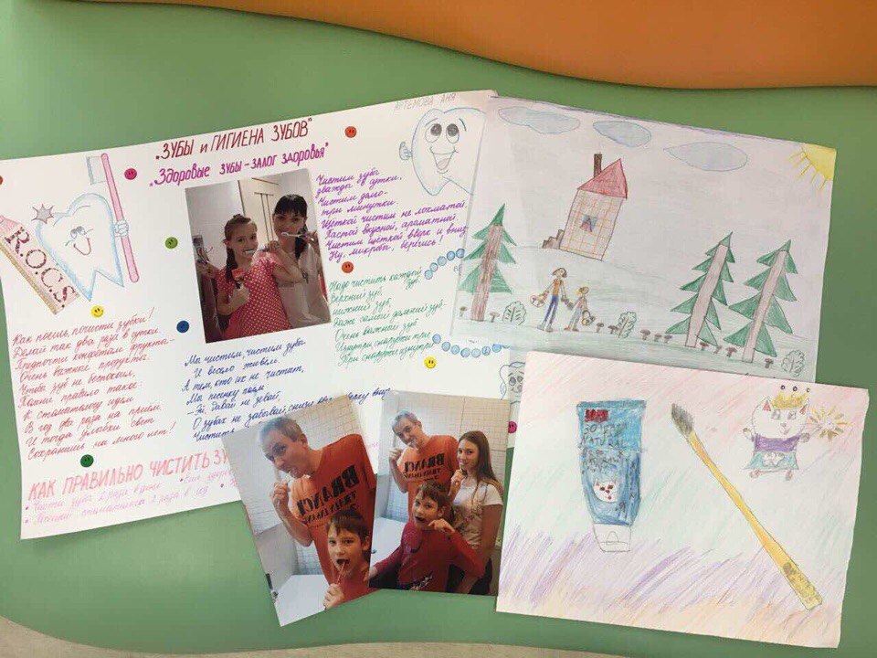 2. Представляли свои творческие работы (стихи, рисунки по теме гигиены, фото на тему «семейная чистка зубов»)
