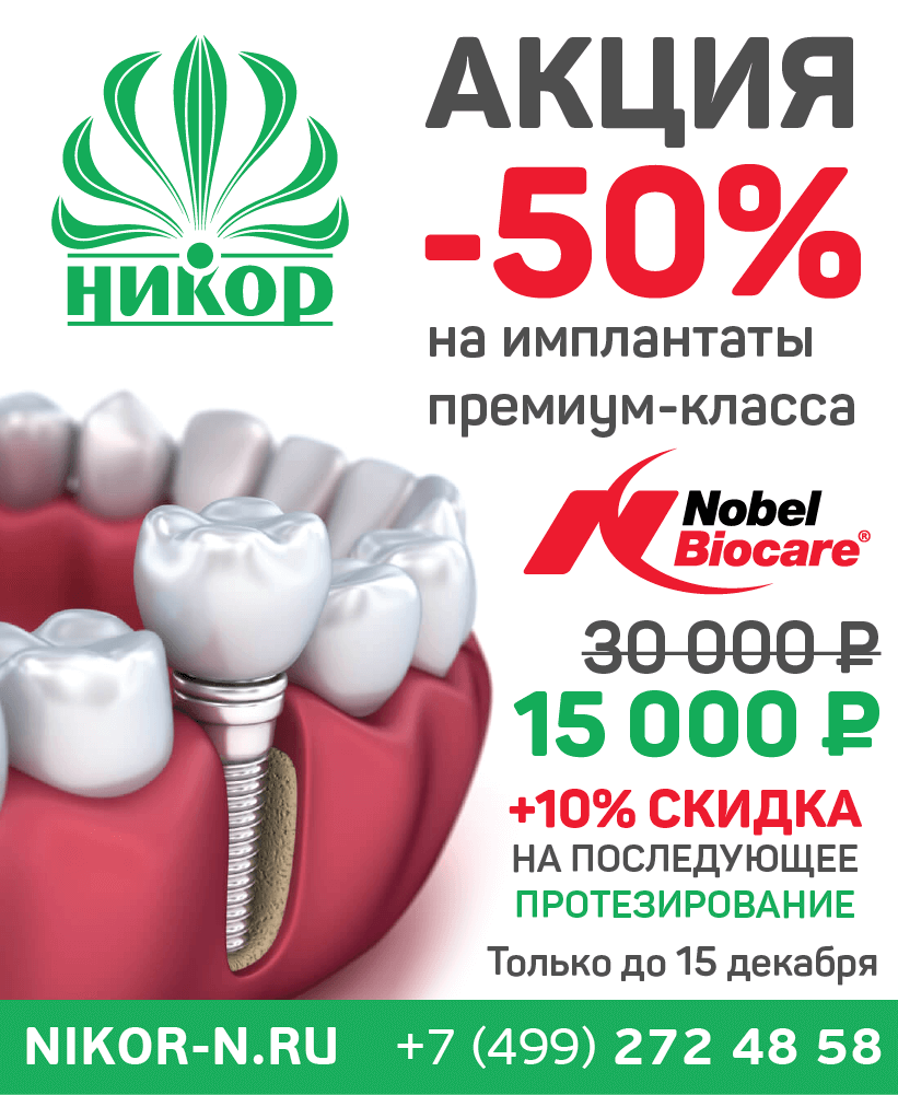 По Многочисленным просьбам акция на импланты премиум — класса Nobel Biocar продлена до 15 декабря во всех клиниках сети «Никор».
