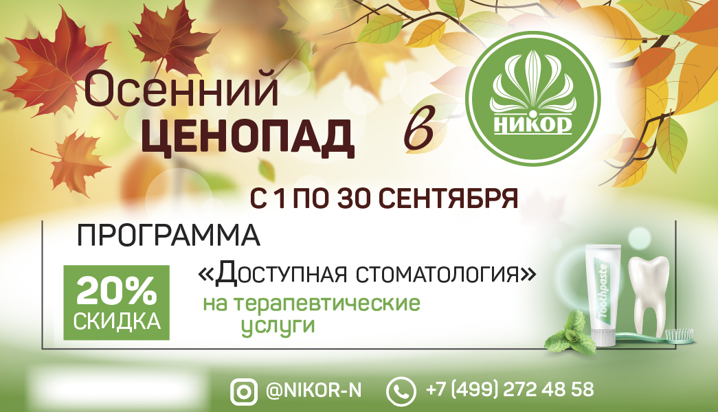 Весь сентябрь на терапевтическое лечение действует скидка 20%.