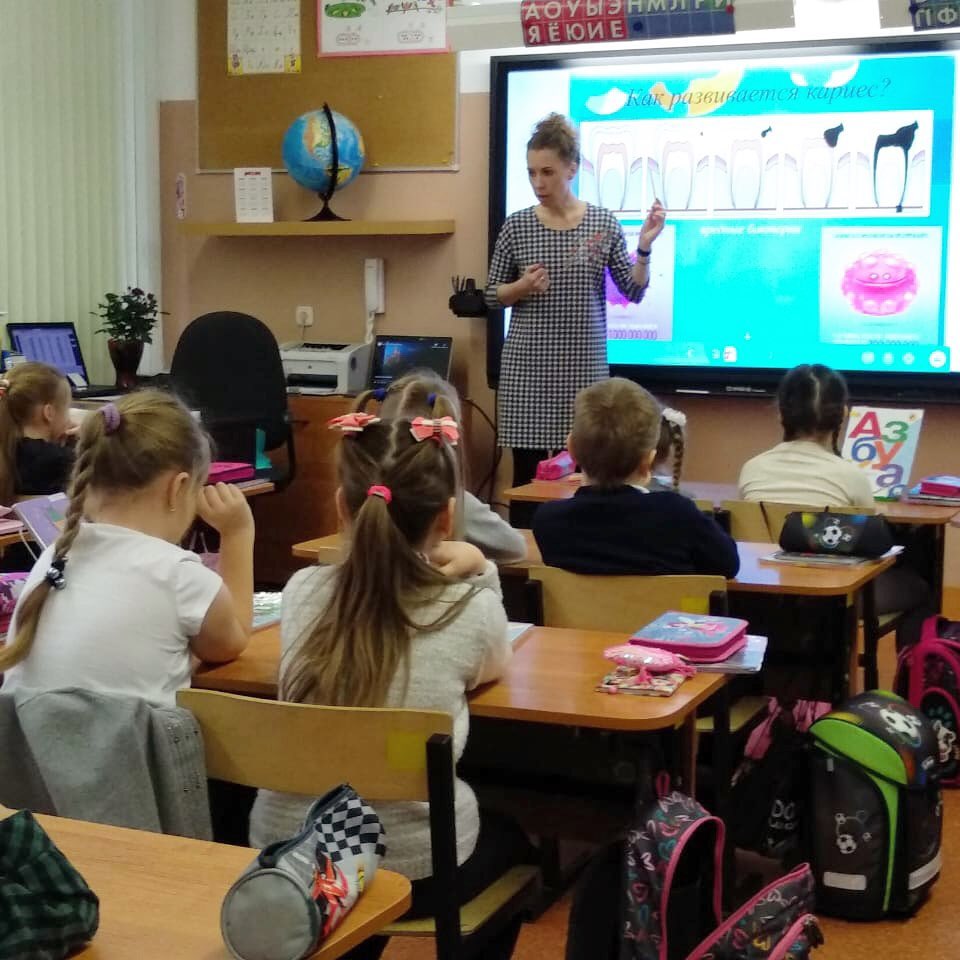 Сегодня наша Зубная Фея провела урок гигиены по социально-оздоровительной программе «Её Величество Зубная Щётка» для учеников первых классов ГБОУ школа № 718. Дети узнали много полезной информации: про функции зубов, о видах ухода за полостью рта, про полезные продукты и многое другое.